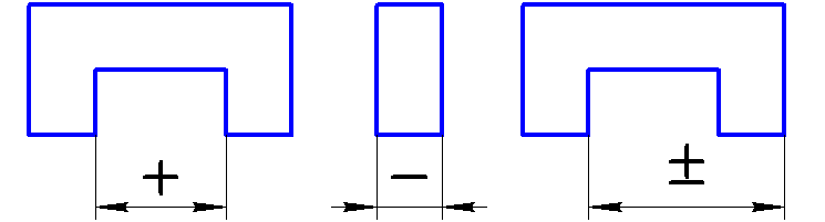 На охватывающие размеры допуски назначается в «+», на охватываемые размеры «-», на все остальные размеры «±».